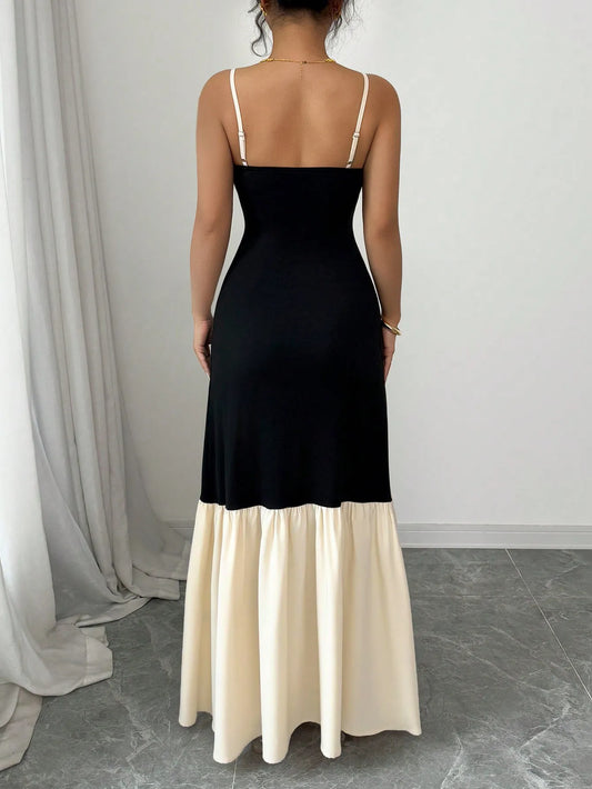 Color Block Back Tie Drop Shoulder Loose Sweater