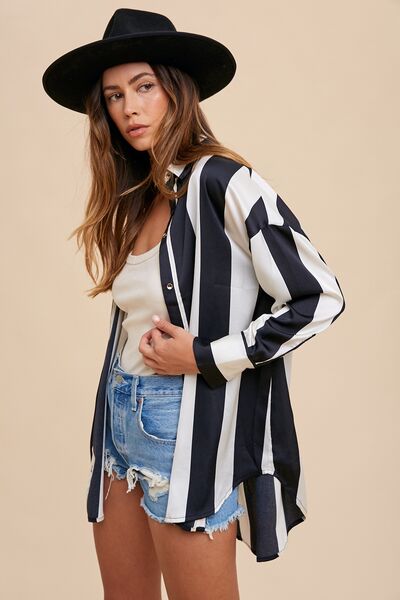 Annie Wear Striped Dropped Shoulder Button Up Shirt
